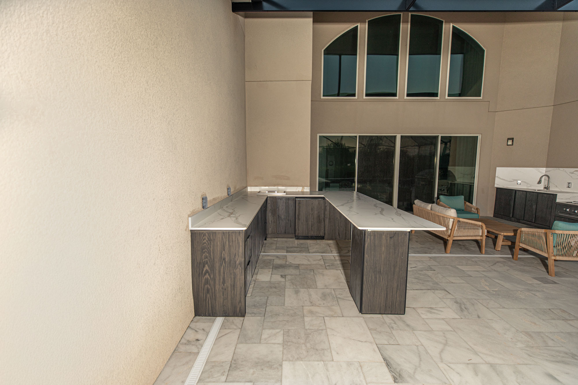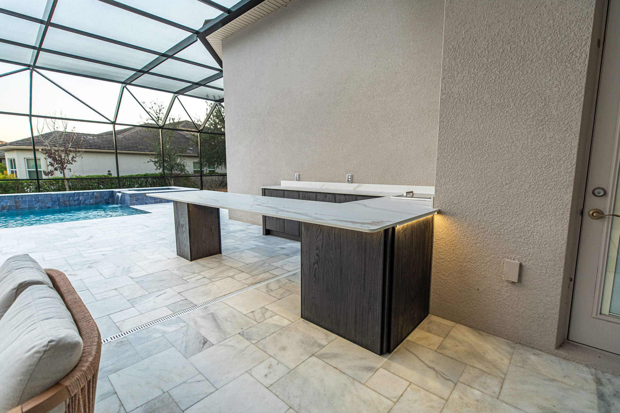 his luxury outdoor kitchen and custom U-shaped bar project in Tampa, Florida was designed for homeowners who want a high-end outdoor entertaining experience. Built with premium outdoor-rated cabinetry and finished with stain-resistant porcelain countertops, this space blends durability, style, and modern performance—perfect for the Florida climate.