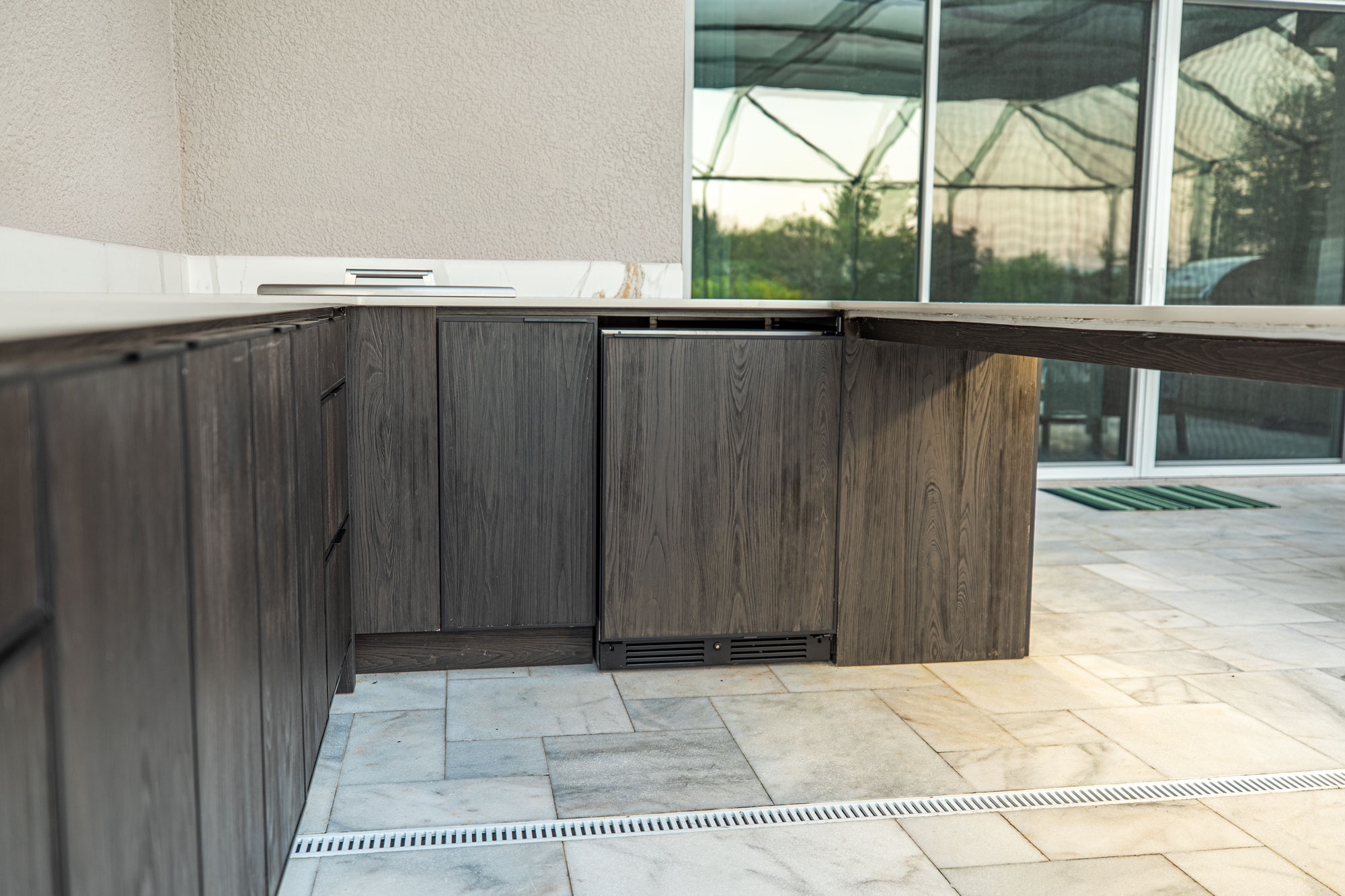 Outdoor-rated cabinetry & panel-ready refrigerator