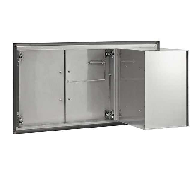 Integrated paper towel cradle discreetly housed behind the right door keeps cleaning essentials close but out of sight.